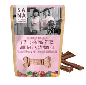 Kramtomosios lazdelės šunims Sana Dog su jautiena ir lašišų aliejumi 150 g