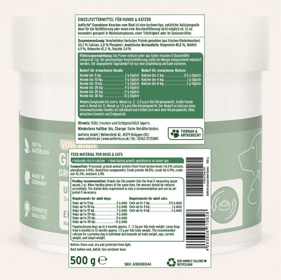 AniForte malti jautienos kaulai – natūralus kalcio šaltinis šunims ir katėms, padedantis palaikyti sveiką kaulų struktūrą ir sąnarių funkciją. Aukštos kokybės kalcis gali padėti lėtinti kaulų retėjimą vyresniame amžiuje bei išlaikyti tvirtus kaulus viso gyvenimo eigoje.