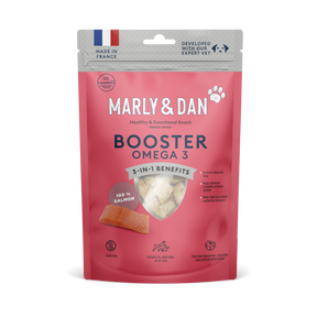 BOOSTER Omega 3 skanėstai šunims palaiko sveiką odą, mažina odos sausumą ir dirglumą. Skanukai padeda šuns kailiui išlikti žvilgančiam ir glotniam. Omega 3 riebalų rūgštys stiprina Tavo šuns imuninę sistemą bei atsparumą.