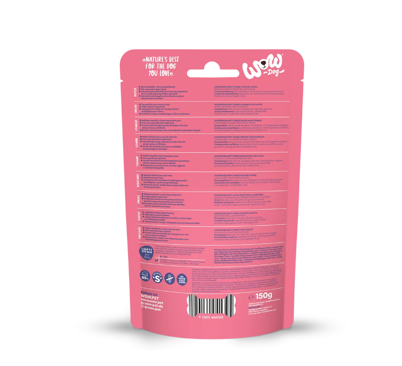 Minkšti skanėstai šunims su elniena ir obuoliais Wow Dog Superfood Soft Cubes prekė užsakyta ir bus išsiųsta vos tik papildymas pasieks sandėlį