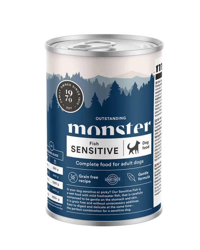 Monster šlapias maistas jautriems šunims su balta žuvimi - 400 g prekė užsakyta ir bus išsiųsta vos tik papildymas pasieks sandėlį