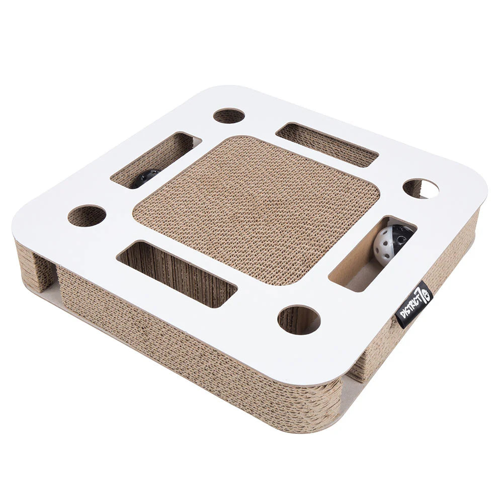 Šis smagus kartoninis gaminys sujungia du produktus: naudingą draskyklę, padedančią katei prižiūrėti nagus, ir intelektualų žaislą, su kuriuo Tavo kačiukas galės dūkti. Viršuje esanti kartoninė draskyklės dalis leidžia katei galąsti nagus į tekstūrą, kuri jai bus itin patraukli. Angos viršuje ir šonuose suteikia priėjimą prie kamuoliuko iš visų pusių, o kamuoliukas su varpeliu nuolat išlaikys katės dėmesį. Tavo katei patiks kaišioti letenėles į SPY skyles, o judantis kamuoliukas taps nesibaigiančiu susidomėjimo šaltiniu!