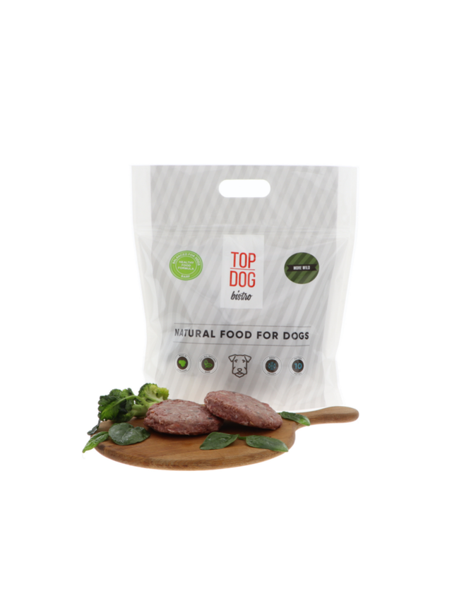Šaldytas maistas šunims su žvėriena Top Dog Bistro More Wild prekė užsakyta ir bus išsiųsta vos tik papildymas pasieks sandėlį