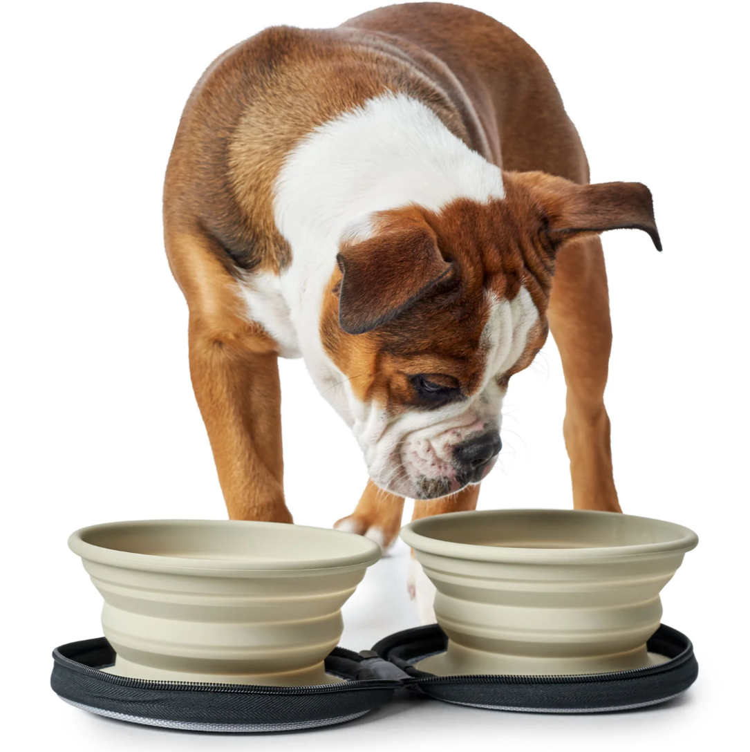 Du dubenėliai viename – maistui ir vandeniui – patogiai susilanksto ir laikomi užtraukiamame dėkle, todėl užima itin mažai vietos. Lengvai telpa į kuprinę ar kelioninį krepšį ir visada yra po ranka, kai prireikia greitai pamaitinti ar pagirdyti augintinį.