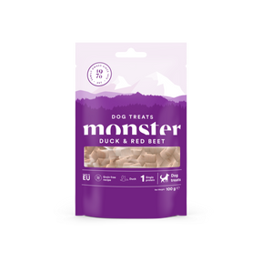 Monster Treats Duck & Red Beat – traškūs išorėje ir minkšti viduje. Tokie gardūs, lyg ką tik iškepti! Puikiai tinka kaip sveikas atlygis ar skanus užkandis jaukiam penktadienio vakarui. O gal tiesiog todėl, kad neatsilaikai prieš tą prašantį žvilgsnį?