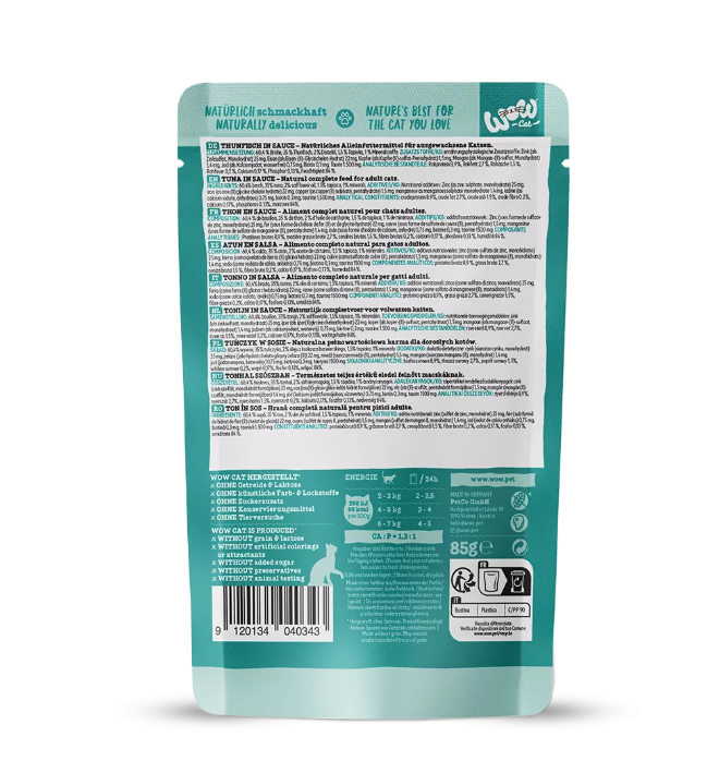 Wow Cat šlapias maistas suaugusioms katėms su tunu padaže 85 g